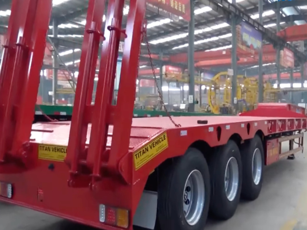 A specialized transport vehicle essential for moving extremely heavy, tall, or oversized equipment like excavators, cranes, and industrial machinery.
